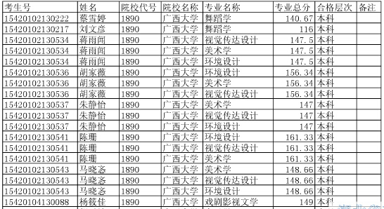 廣西大學(xué)2015年在湖北省招生藝術(shù)專業(yè)合格考生名單