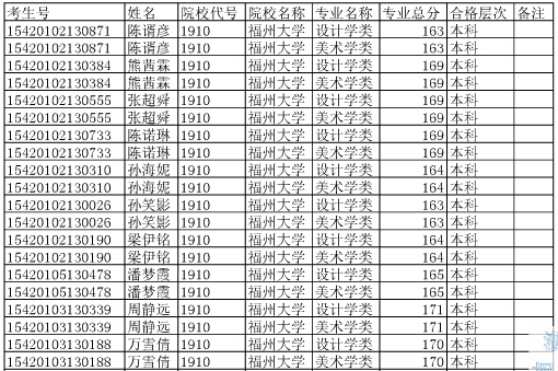 福州大學2015年在湖北省招生藝術專業(yè)合格考生名單