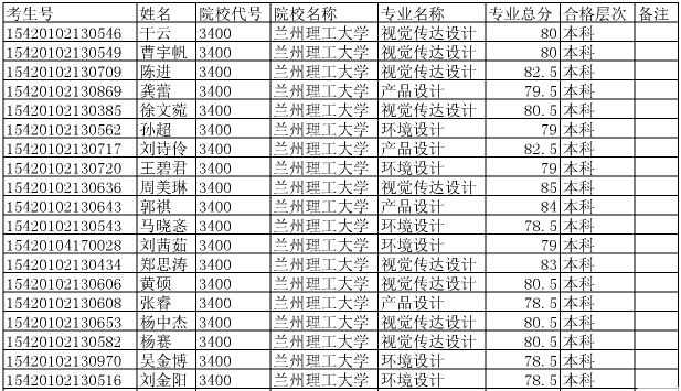 蘭州理工大學(xué)2015年在湖北省招生藝術(shù)專業(yè)合格考生名單