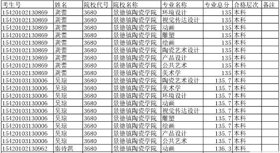 景德鎮(zhèn)陶瓷學(xué)院2015年在湖北省招生藝術(shù)專業(yè)合格考生名單