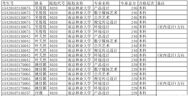 南京林業(yè)大學(xué)2015年在湖北省招生藝術(shù)專業(yè)合格考生名單