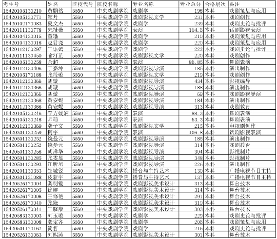 "2015年中央戲劇學院在湖北省招生藝術專業(yè)合格考生名單" 相關文章推薦