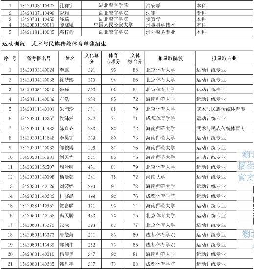 (高水平運動隊一級單招、公安英烈子女保送生、運動訓練、武術與民族傳統(tǒng)體育)