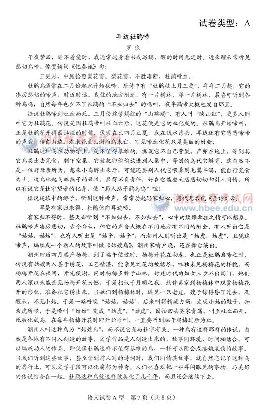 "2012年湖北省高考語(yǔ)文A卷試題" 相關(guān)文章推薦