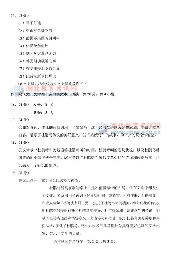 "2012年湖北省高考語文B卷試題答案" 相關(guān)文章推薦