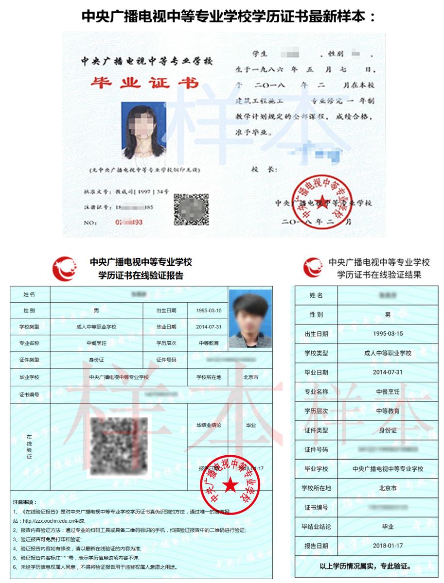 中央廣播電視中等專業(yè)學(xué)校證書(shū)樣本