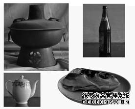 三、模擬寫生內(nèi)容:一個(gè)火鍋,一個(gè)茶壺,一個(gè)啤酒瓶,一個(gè)魚頭,一個(gè)瓷盤。