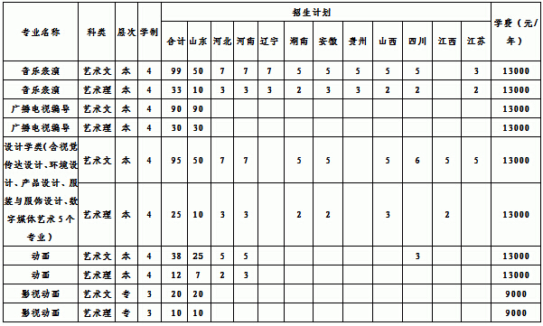 2015年聊城大學(xué)東昌學(xué)院藝術(shù)類專業(yè)招生計(jì)劃