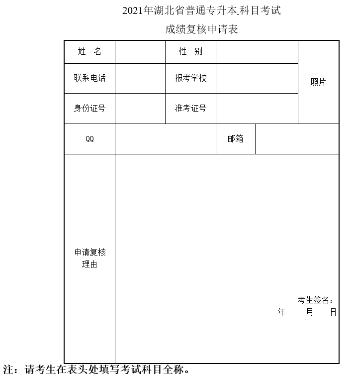 附件:2021年湖北省普通專升本科目考試成績復核申請表