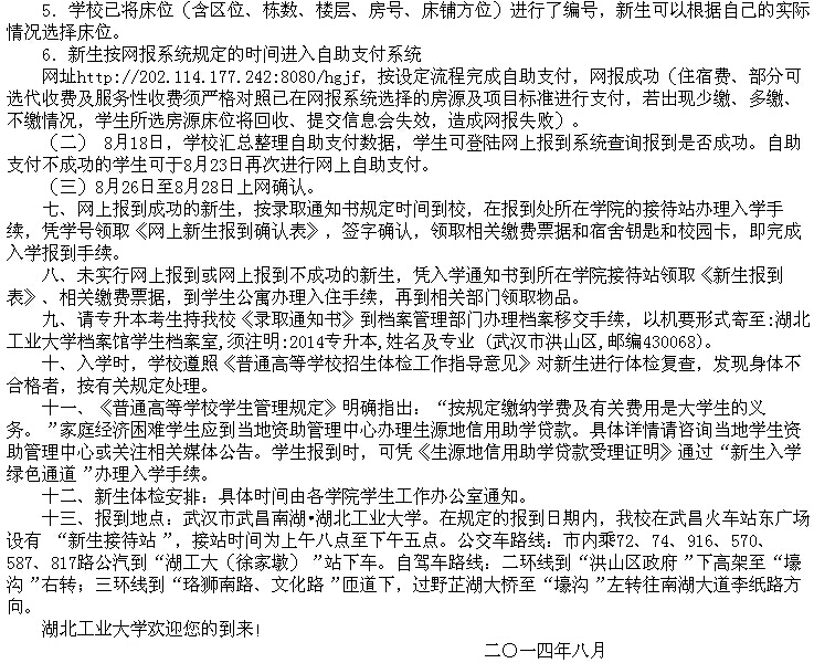 2014年湖北工業(yè)大學普通專升本新生入學須知