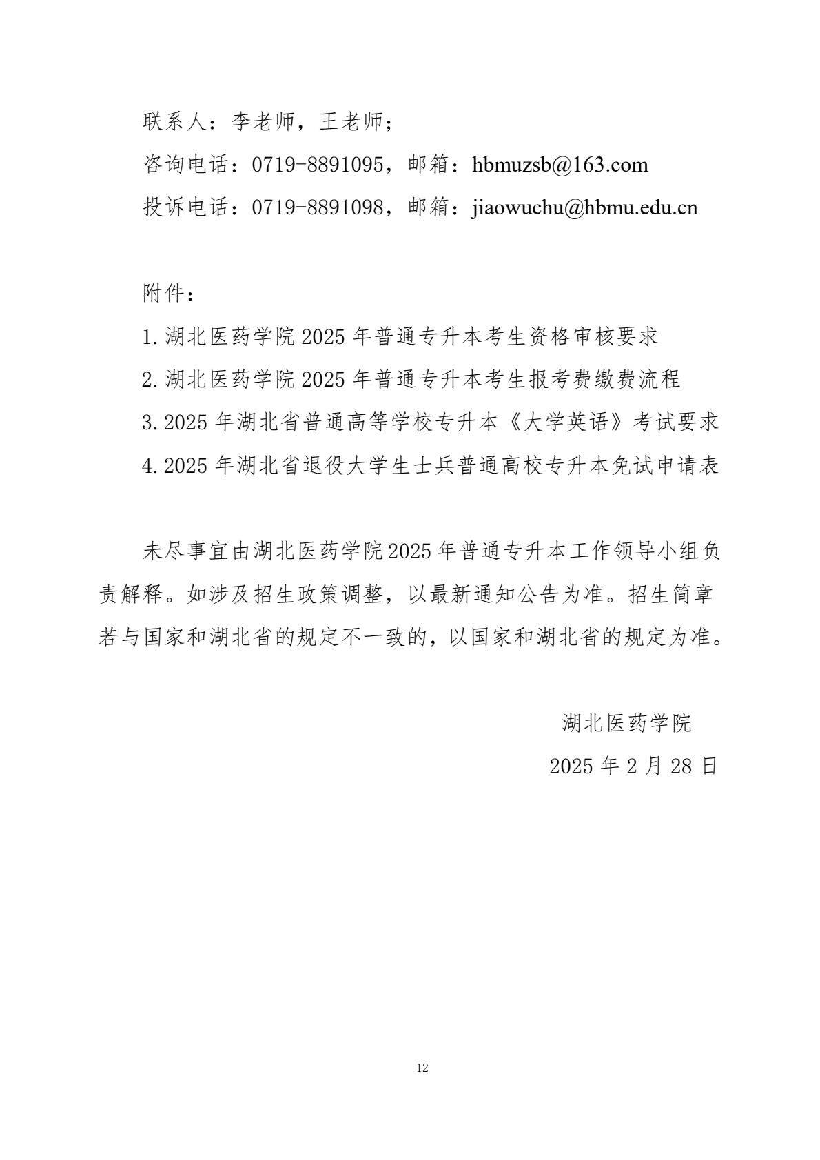 - 2025年湖北醫(yī)藥學(xué)院普通專升本招生簡(jiǎn)章