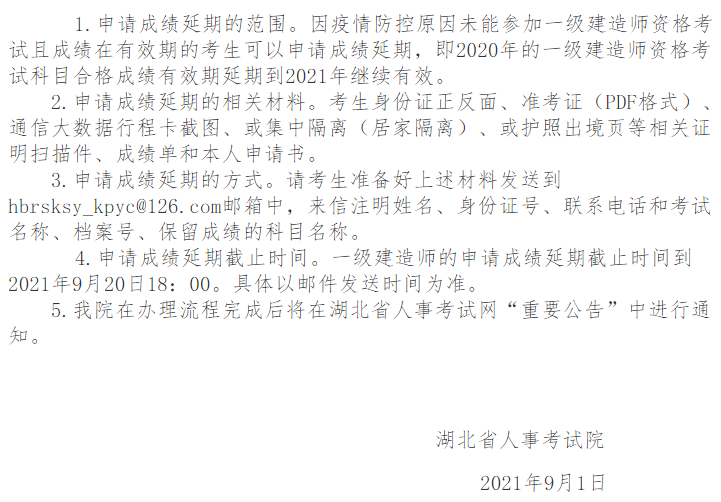 2021年湖北一級建造師資格考試申請成績延期的有關(guān)通知